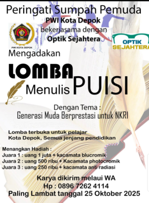 Memeriahkan Hari Sumpah Pemuda yang jatuh pada 28 Oktober 2025, Persatuan Wartawan Indonesia (PWI) Kota Depok bekerja sama dengan Optik Sejahtera menggelar Lomba Menulis Puisi untuk kalangan pelajar di Kota Depok.