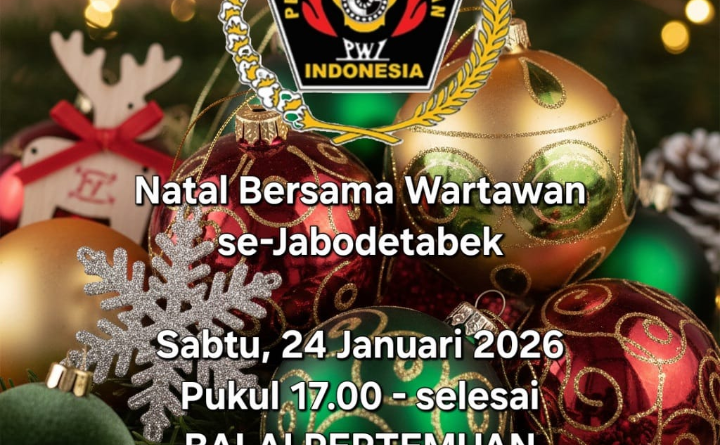 Persatuan Wartawan Indonesia (PWI) Pusat akan menggelar Natal Bersama wartawan Jabodetabek pada Sabtu, 24 Januari 2026. Perayaan Natal tahun ini mengangkat tema “Allah Hadir Untuk Menyelamatkan Keluarga” yang diambil dari Matius 1:21-24, dengan subtema “Natal Membawa Berita Sukacita dan Keselamatan Bagi Manusia.”